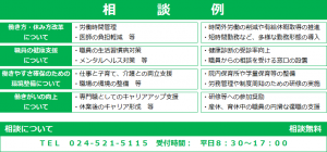 ※相談等にあたりましては、上記電話番号若しくはこちらの相談申込書(PDF:88KB)をダウンロードいただき、FAX(024-521-3156)等でお申込み願います。