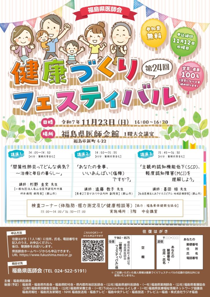 11月23日(日)に第24回健康づくりフェスティバルを開催いたします。
