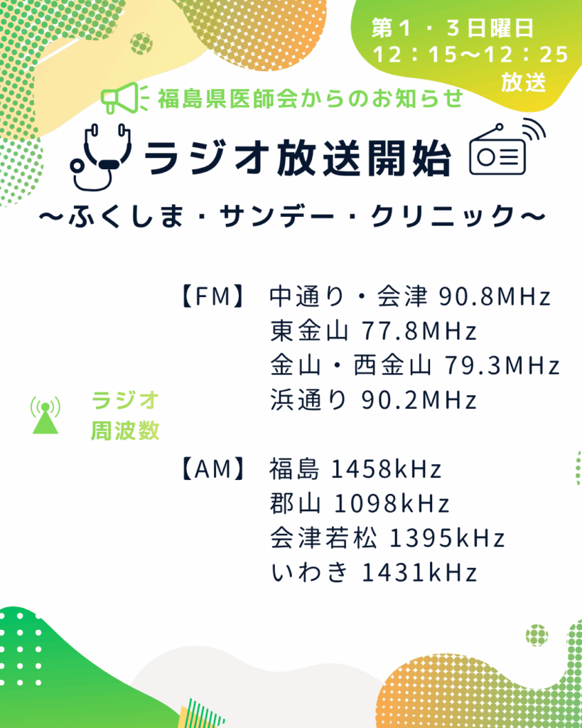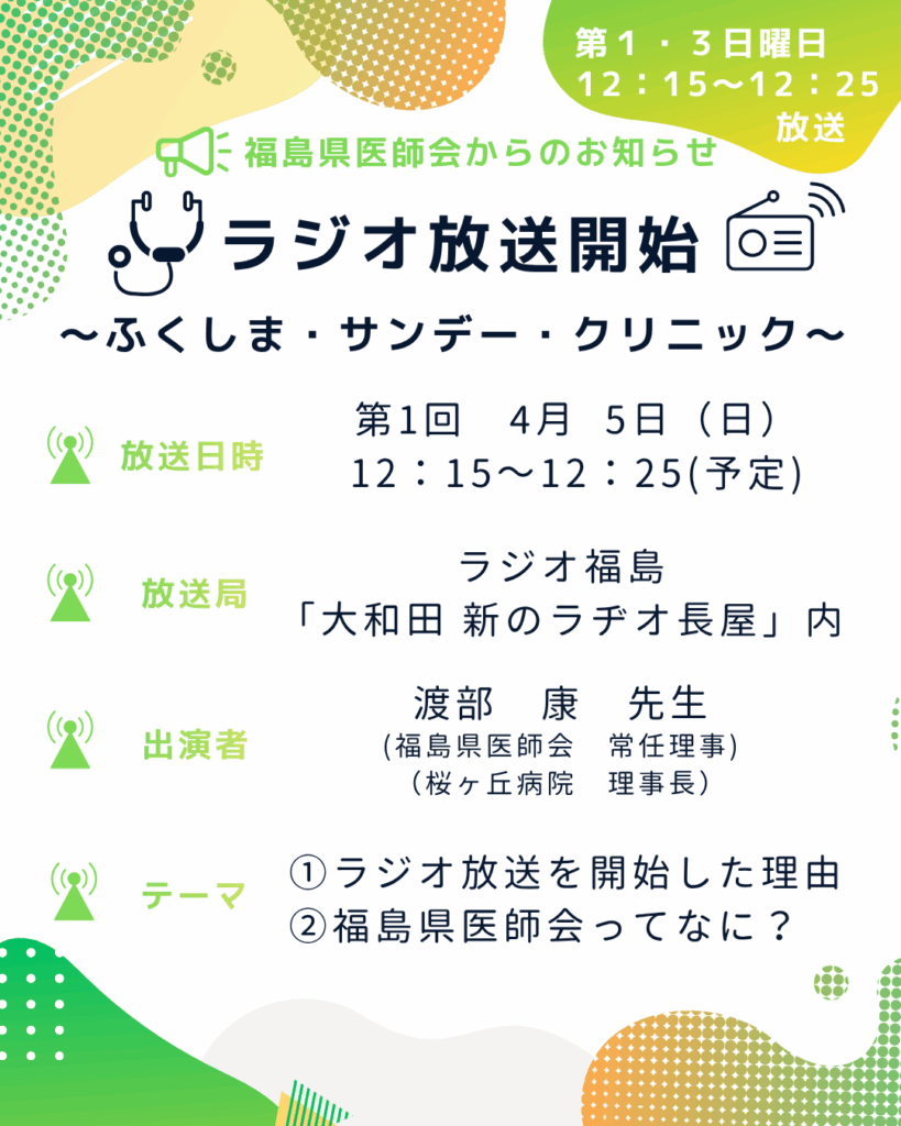ラジオ番組「第1回ふくしま・サンデー・クリニック」放送のご案内について