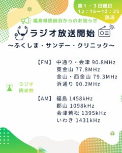 5月3日(日)5月17日(日)にラジオ番組「ふくしま・サンデー・クリニック」を放送いたしますので、是非ご覧ください。