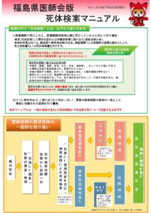 このたび、増加する検案、解剖を見据え、検案・解剖の精度の向上を目的として「福島県医師会版死体検案マニュアル」を作成いたしました。