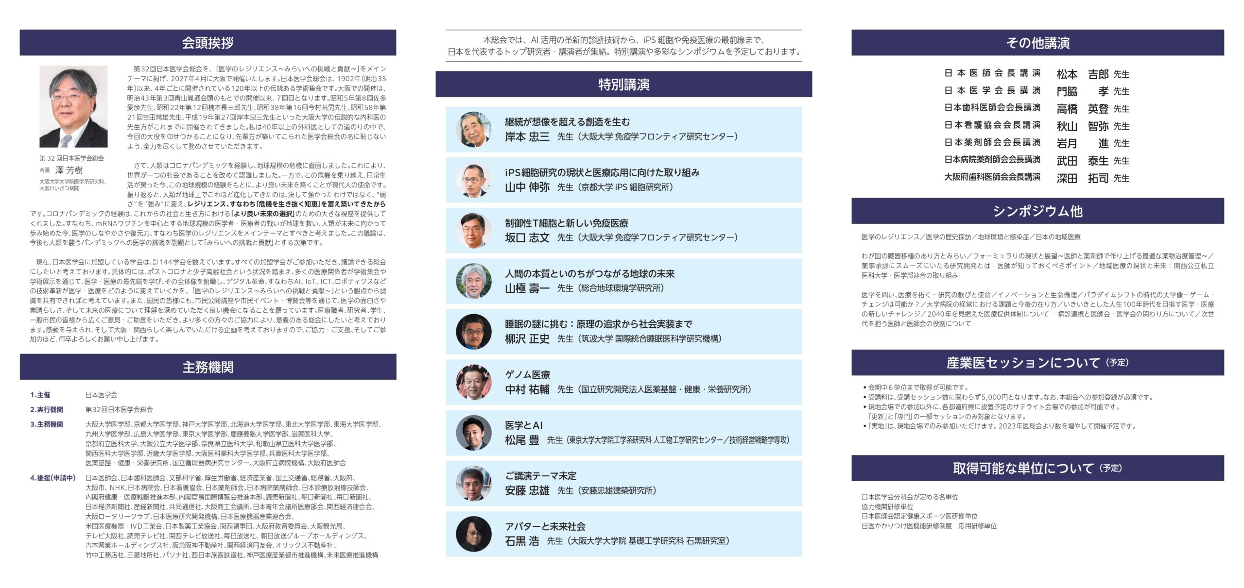 このたび、第32回日本医学会総会が「医学のレジリエンス ~みらいへの挑戦と貢献~ 人生100年時代をどう生きるか」をメインテーマとし、